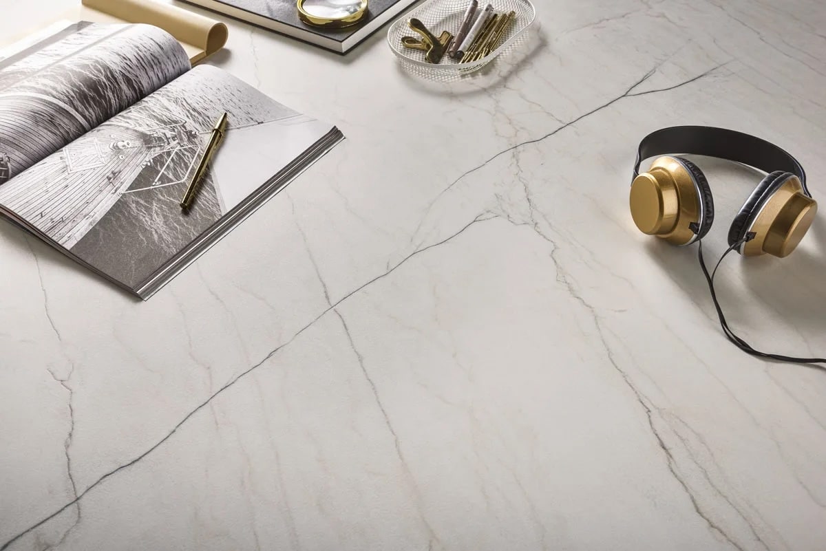 White Macaubas keramisk benkeplate er inspirert av brasilianske kvartsitter – elfenbenshvit bakgrunn med langsgående årer i grå og sandtoner. White Macaubas representerer fremtidens overflatedesign, der naturlig skjønnhet og teknologisk innovasjon er i perfekt harmoni.